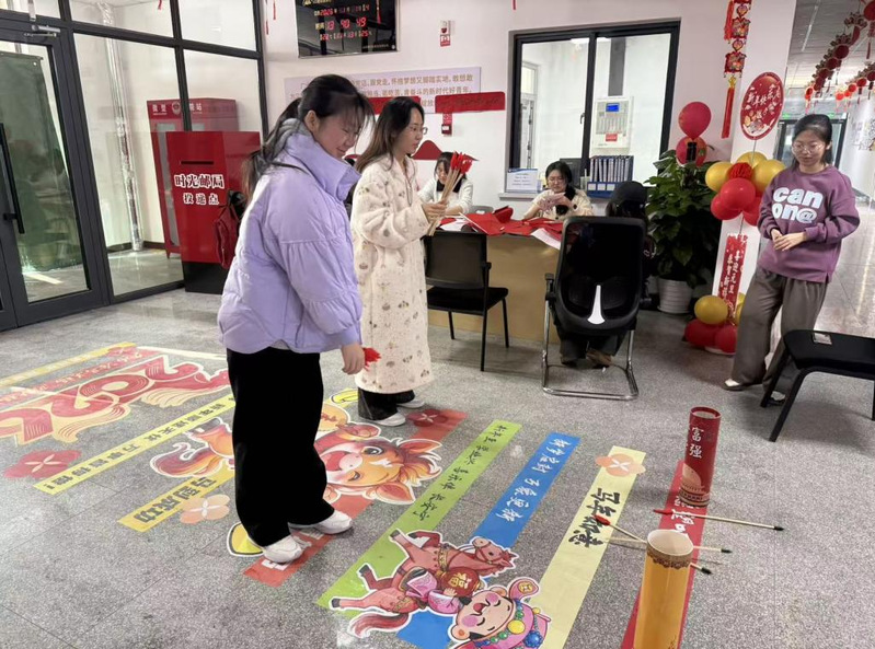 活动现场设有剪纸体验工坊、福气投壶、时光信筒与新愿墙四大体验区。在剪纸体验工坊,“剪纸小导师”现场演示折纸、画样、运剪等传统技艺,同学们在一折一剪中亲身感受非遗艺术的独特魅力;福气投壶区年味浓厚,欢笑不断;时光信筒前,大家执笔书写寄给未来自己的心声;新愿墙上则贴满了真诚的新年祝福与美好期盼。